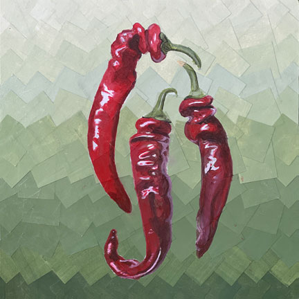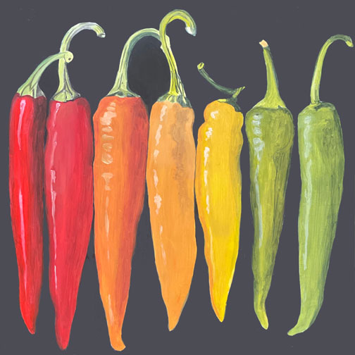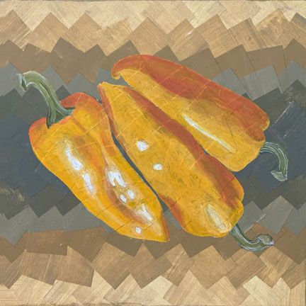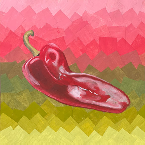 Peppers • 2025 Colorful, Healthy, Sweet, Spicy! What’s not to love about peppers?! Cayenne Harvest I • 10X10″ • Acrylic on panel • 2025 Purple Bell • 8X8″ • Collage & Acrylic on panel • 2025 Corno_di-Torro • 8X8″ • Collage & Acrylic on panel • 2025 Orange Bell • 6X6″ • Collage & Acrylic on panel • 2025 Escamillo • 6X6″ • Collage & Acrylic on panel • 2025 Shishitos • 6X6″ • Collage & Acrylic on panel • 2025 Hot Wax • 6X6″ • Collage & Acrylic on panel • 2025 Jimmy Nardello • 6X6″ • Collage & Acrylic on panel • 2025 • SOLD Cayenne Harvest II • 6X6″ • Collage & Acrylic on panel • 2025 • SOLD Share this: Click to share on X (Opens in new window) X Click to share on Facebook (Opens in new window) Facebook Like Loading...